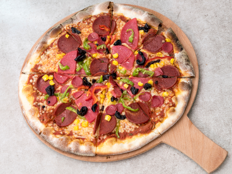 28 cm (Orta Boy) NeoNatusa Özel Pizza Hamuru üzerinde Pizza Sosu, Mozzarella Peyniri, Salam, Sucuk, Sosis, Mısır, Siyah Zeytin ile servis edilir.